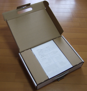 箱の中はPC本体とACアダプターと、PCから外してあるバッテリーのみ。説明書も薄いペラペラのものが2冊。これで十分だ。