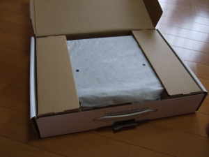 箱が小さい。今まで買ったノートPCの中では一番小さい。本当にノートPCのサイズの箱だ。PCしか入ってない。